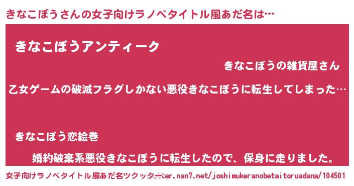 | 男性向けラノベタイトル風あだ名 | 『この素晴らしい世界にきなこぼうを!』 |
