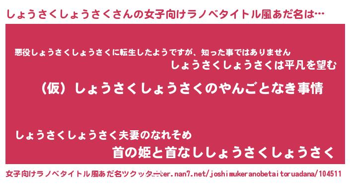 | 男性向けラノベタイトル風あだ名 | 『しょうさくしょうさくの憂鬱』 |