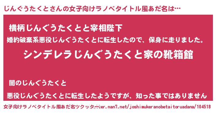 | 意味不明あだ名 | 『住所不定無職じんぐうたくと(13歳)』 |