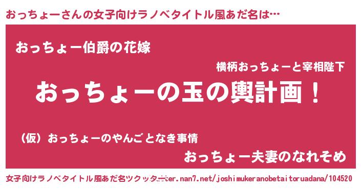 | 胡散臭い通販商品みたいなあだ名 | 『運命の人と巡り会える高級そうな壺…その名も「おっちょー」』 |