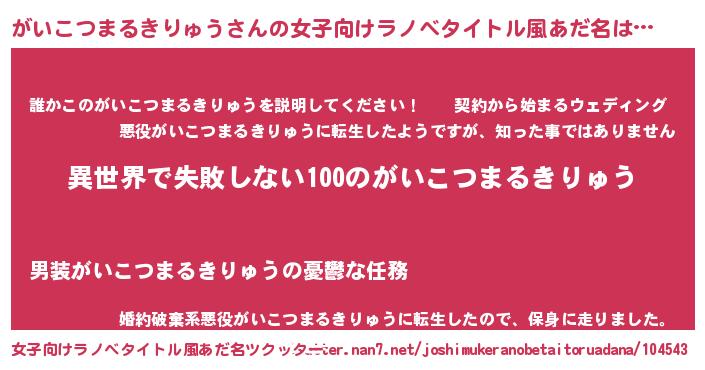 | 男性向けラノベタイトル風あだ名 | 『がいこつまるきりゅうという概念が存在しない退屈な世界 』 |