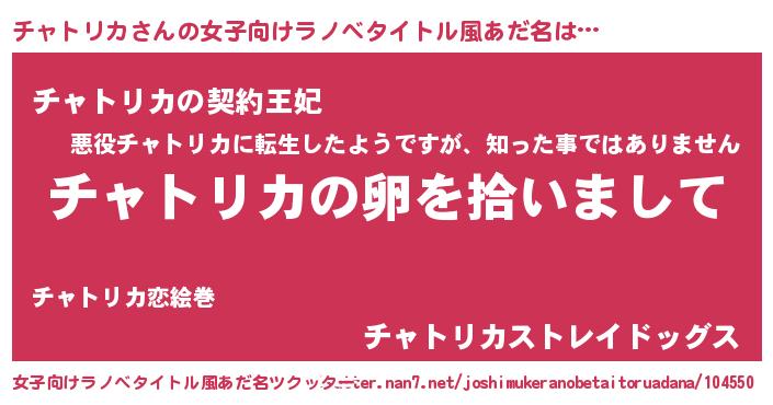 | ヘコむあだ名 | 『チャっ子』『チャトリカ(笑)』 |