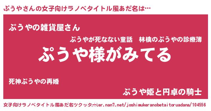 | ヒーロー風カッコイイあだ名 | 『炎刃騎士プウ』『ウルトラぷうやマン』 |