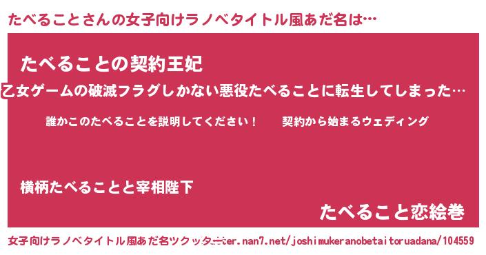 | 男性向けラノベタイトル風あだ名 | 『タベルコトアートオンライン』 |