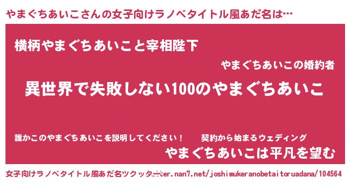 | 男性向けラノベタイトル風あだ名 | 『やまぐちあいこという概念が存在しない退屈な世界 』 |