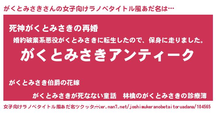 | 胡散臭い通販商品みたいなあだ名 | 『テレビで話題の高麗人参…その名も「がくとみさき」』 |