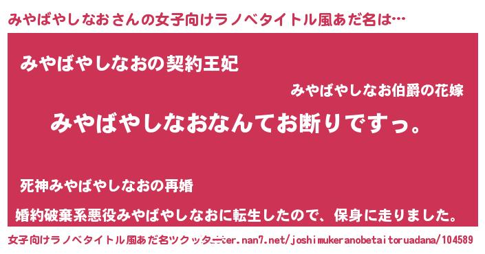 | 意味不明あだ名 | 『自称みやばやしなお』 |