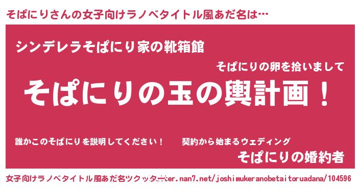 | 男性向けラノベタイトル風あだ名 | 『転生したらそぱにりだった件』 |