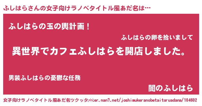 | 意味不明あだ名 | 『永久保存ふしはら』『自称ふしはら』 |