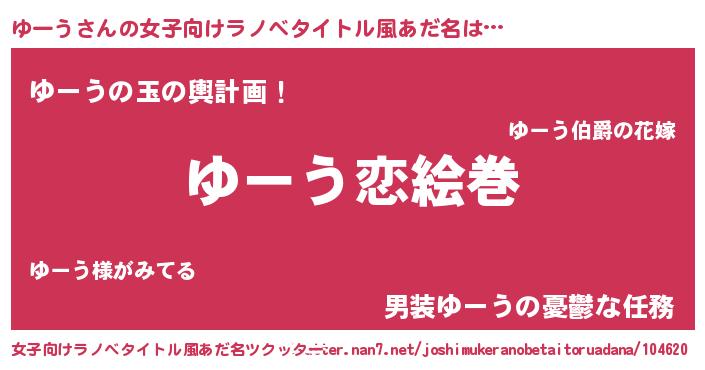 | ヒーロー風カッコイイあだ名 | 『慈愛の使者ゆーう』『炎刃騎士ユー』 |
