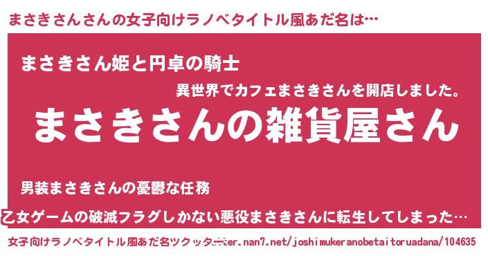 | ファンタジー風あだ名 | 『エターナルマサキサンー』『マサフェル』 |
