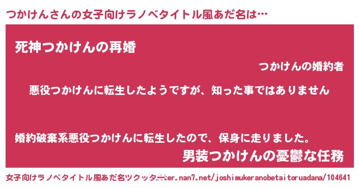 | 男性向けラノベタイトル風あだ名 | 『この素晴らしい世界につかけんを!』 |