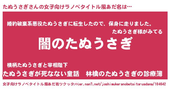 | 男性向けラノベタイトル風あだ名 | 『Re:たぬうさぎから始める異世界生活』 |