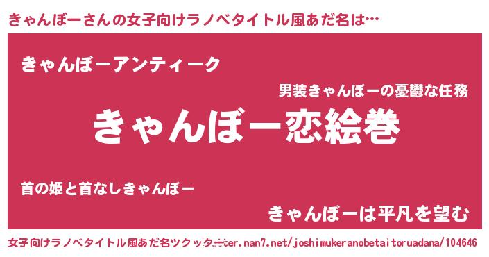| ヒーロー風カッコイイあだ名 | 『愛の使者きゃんぼー』『暗黒騎士キャ』 |