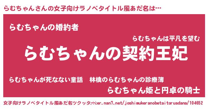 | 男性向けラノベタイトル風あだ名 | 『誰もが恐れるあのらむちゃんが、ぼくの専属メイドになるようです。』 |