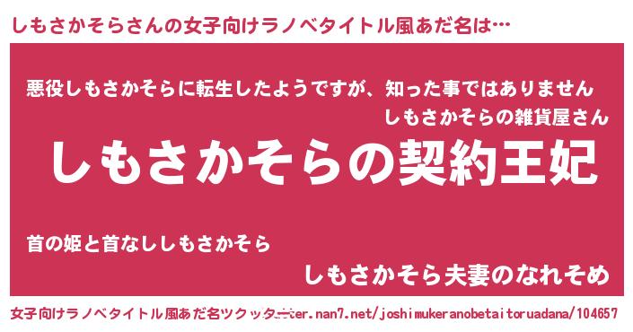 | 意味不明あだ名 | 『永久保存しもさかそら』 |