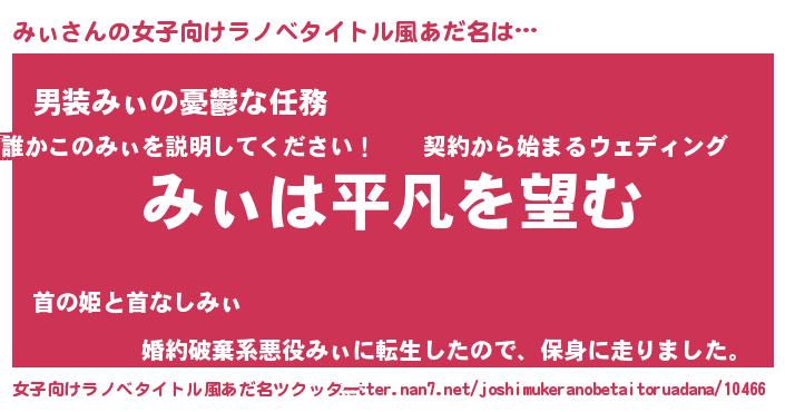 | 男性向けラノベタイトル風あだ名 | 『ダンジョンにみぃを求めるのは間違っているだろうか』 |
