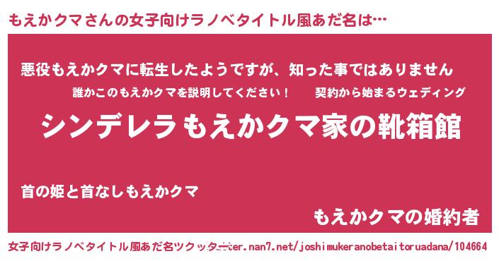 | 胡散臭い通販商品みたいなあだ名 | 『世界中を虜にした100年もののヴィンテージワイン…その名も「もえかクマ」』 |