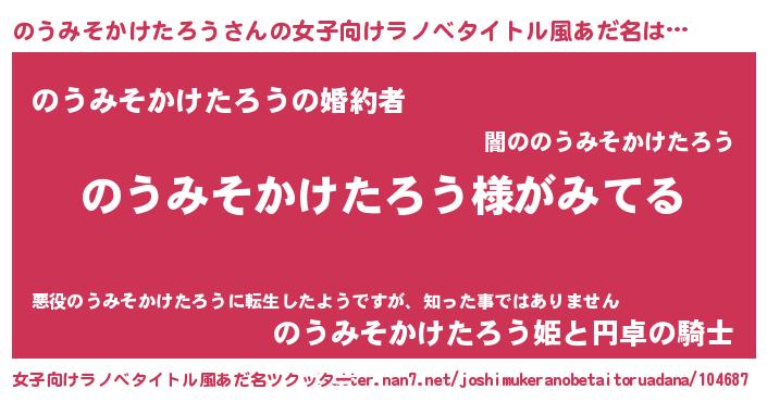 | 男性向けラノベタイトル風あだ名 | 『のうみそかけたろうの嫁は女の子じゃないと思った?』 |