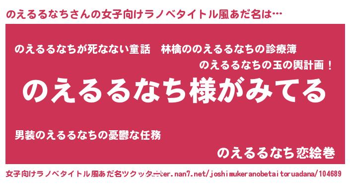 | 男性向けラノベタイトル風あだ名 | 『のえるるなちの嫁は女の子じゃないと思った?』 |