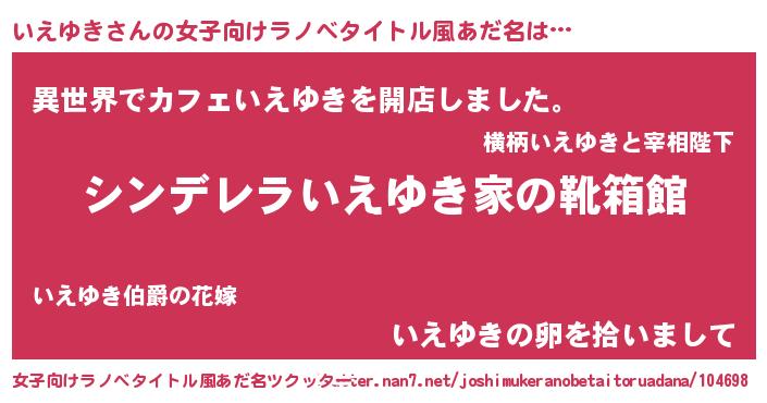 | 意味不明あだ名 | 『永久保存いえゆき』『ペロリンいえゆき』 |