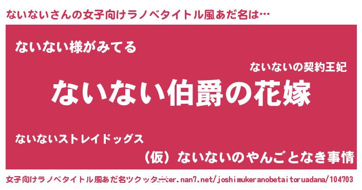 | 男性向けラノベタイトル風あだ名 | 『やはりないないの青春ラブコメはまちがっている 』 |