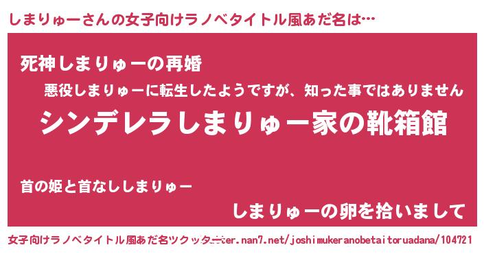 | 意味不明あだ名 | 『眠気覚ましガムしまりゅー味』 |