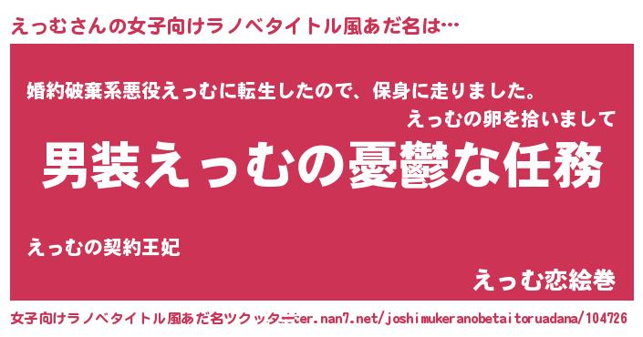 | ヒーロー風カッコイイあだ名 | 『慈愛の使者えっむ』『黄金騎士エッ』 |