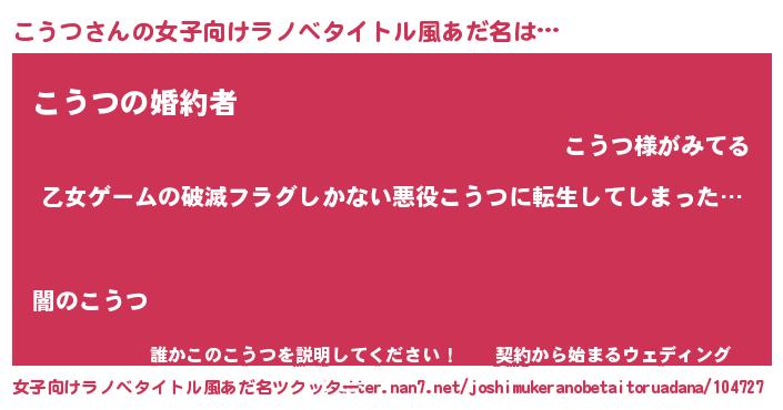 | 男性向けラノベタイトル風あだ名 | 『この素晴らしい世界にこうつを!』 |