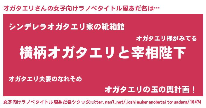 | 男性向けラノベタイトル風あだ名 | 『オガタエリに滅ぼされるだけの簡単なお仕事です』 |