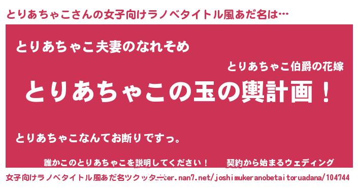 | ヒーロー風カッコイイあだ名 | 『慈愛の使者とりあちゃこ』 |