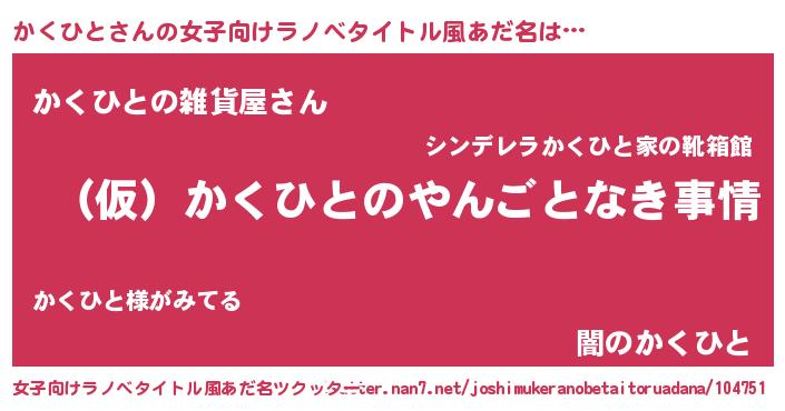 | 男性向けラノベタイトル風あだ名 | 『かくひとの憂鬱』 |