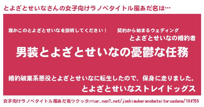 | 胡散臭い通販商品みたいなあだ名 | 『モテモテ間違いなしブレスレット…その名も「とよざとせいな」』 |
