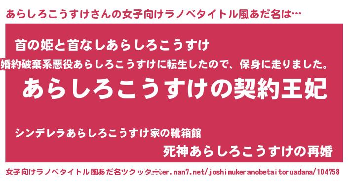 | 意味不明あだ名 | 『永久保存あらしろこうすけ』 |