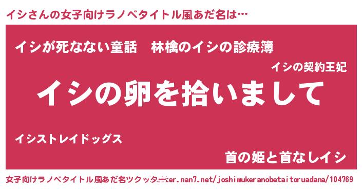 | 胡散臭い通販商品みたいなあだ名 | 『伝統あるサプリメント…その名も「イシ」』 |
