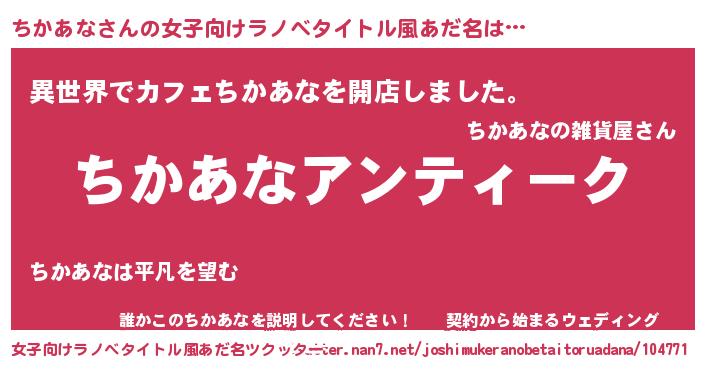 | ヘコむあだ名 | 『ちかあな(震え声)』『ちかにゅー』 |