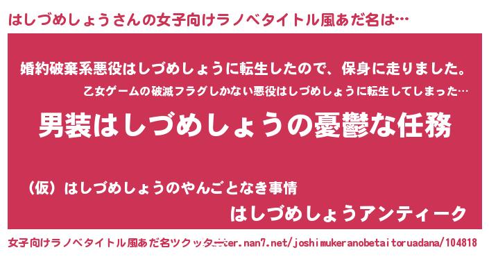 | 胡散臭い通販商品みたいなあだ名 | 『テレビで話題の高麗人参…その名も「はしづめしょう」』 |
