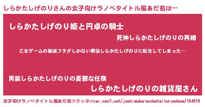| 男性向けラノベタイトル風あだ名 | 『魔弾の王としらかたしげのり』 |