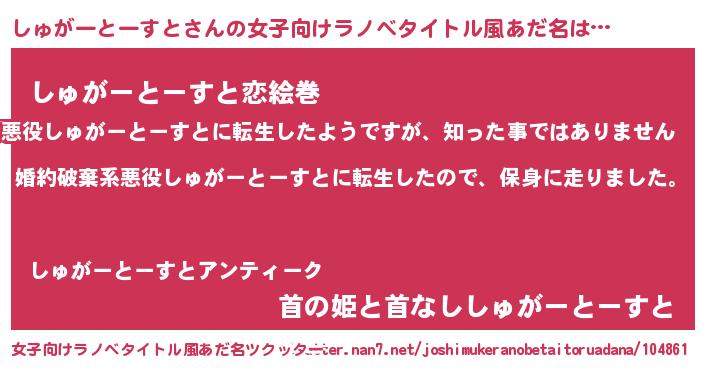 | 男性向けラノベタイトル風あだ名 | 『シュガートーストスレイヤー』 |