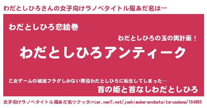 | 男性向けラノベタイトル風あだ名 | 『魔法科高校のわだとしひろ』 |