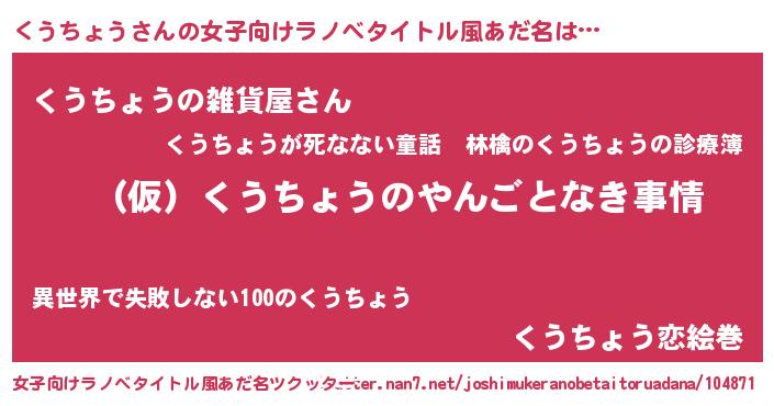 | 男性向けラノベタイトル風あだ名 | 『くうちょうの憂鬱』 |