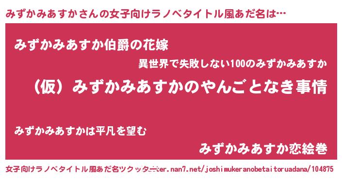 | 男性向けラノベタイトル風あだ名 | 『みずかみあすかの憂鬱』 |