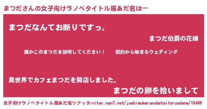 | 男性向けラノベタイトル風あだ名 | 『マツダアートオンライン』 |