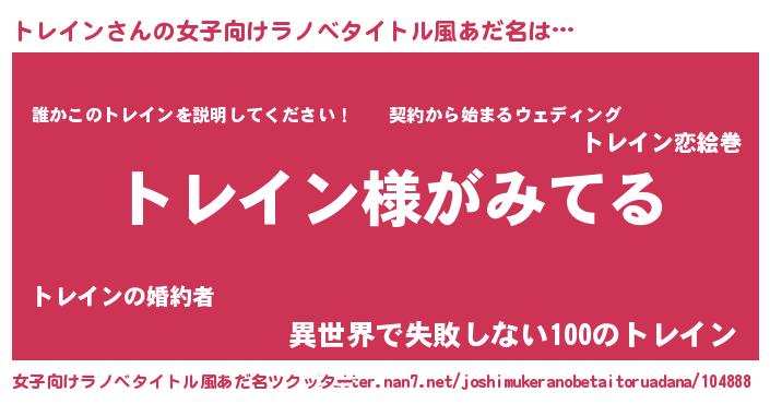 | 男性向けラノベタイトル風あだ名 | 『トレインの嫁は女の子じゃないと思った?』 |
