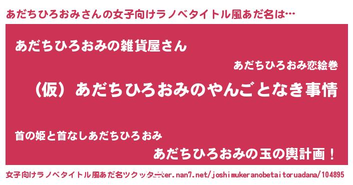 | 胡散臭い通販商品みたいなあだ名 | 『必ず成功するブレスレット…その名も「あだちひろおみ」』 |