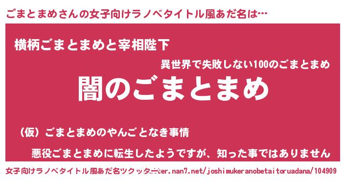 | 男性向けラノベタイトル風あだ名 | 『Re:ごまとまめから始める異世界生活』 |