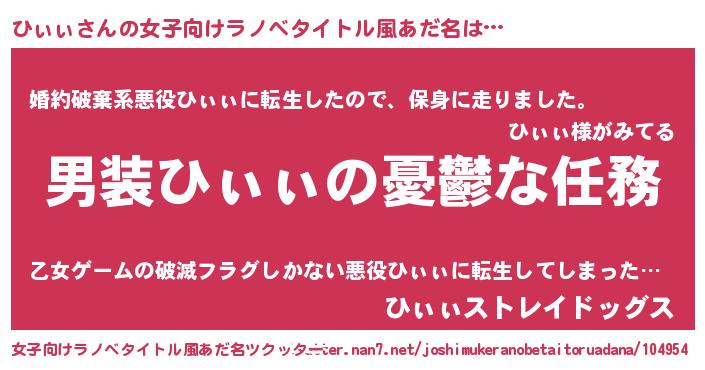 | ヘコむあだ名 | 『ひぃぷりん』『ひぃぃ(小並感)』 |