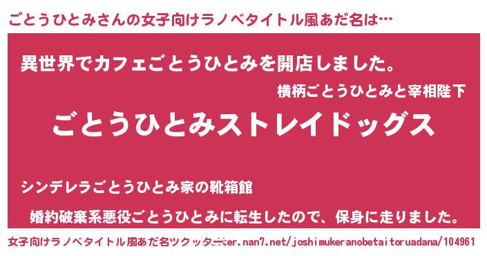 | 伝説のあだ名 | 『古文書に記された勇者ごとうひとみ』 |
