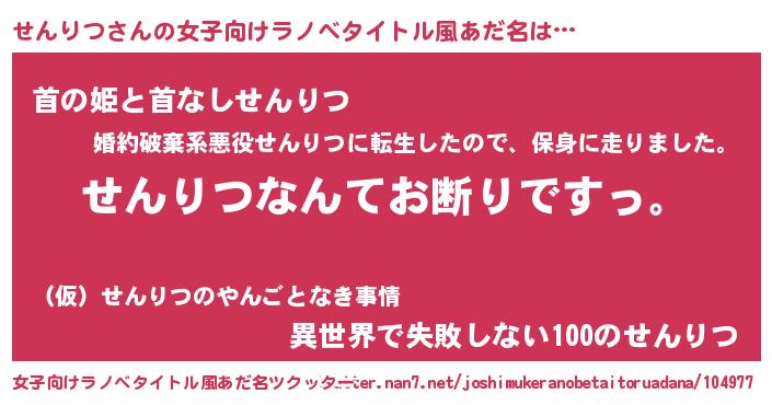 | 意味不明あだ名 | 『自称せんりつ』『永久保存せんりつ』 |