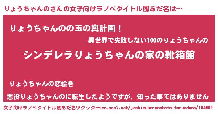 | ヒーロー風カッコイイあだ名 | 『仮面リョダー』『ネオリョウチャンノ』 |